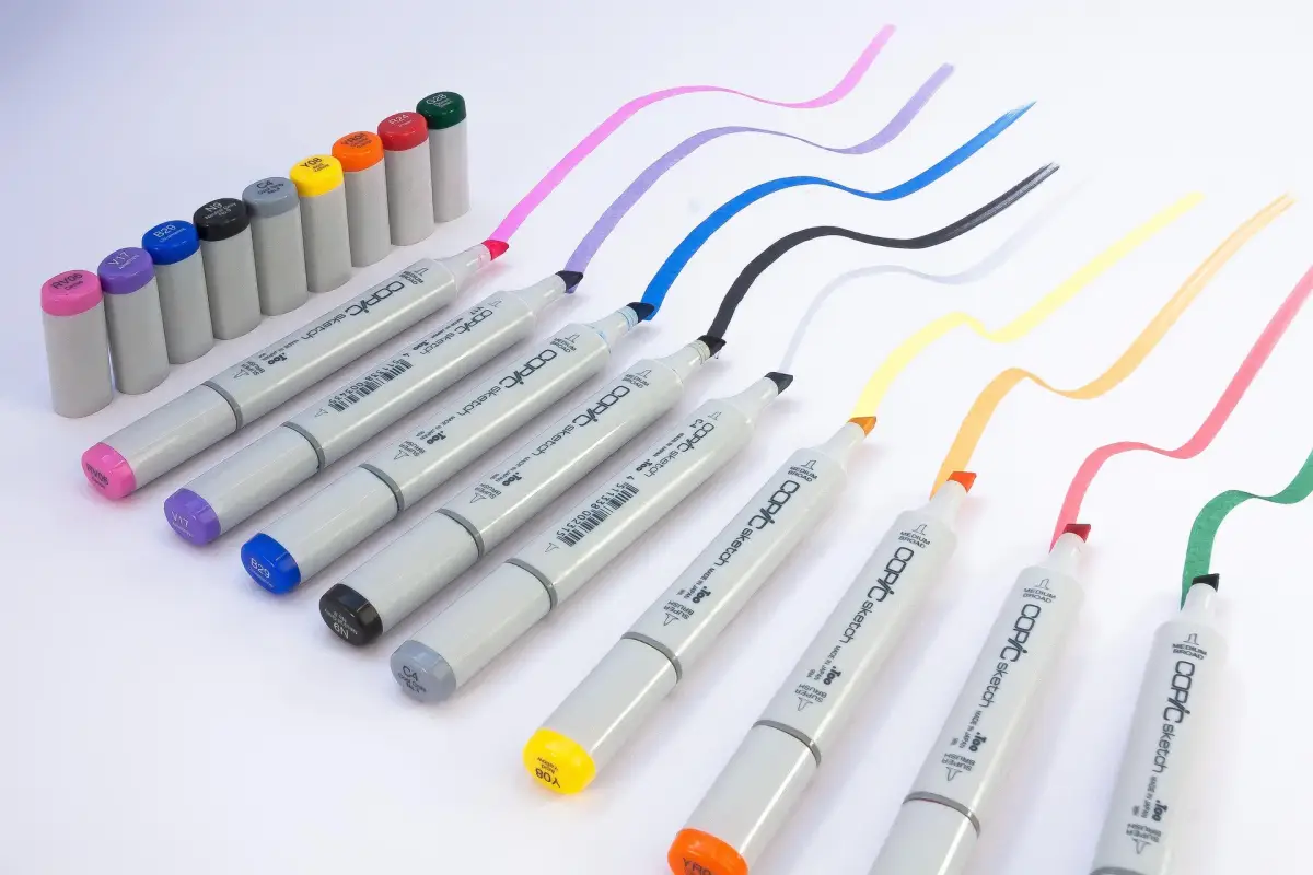 Alcohol-based markers: Popular among illustrators. They blend smoothly but may bleed through paper. (Brands like Copic or Ohuhu are popular.)